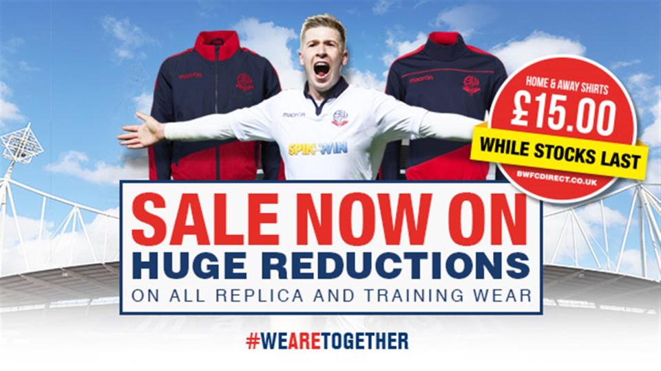 Bolton Wanderers Football Club's sale is still on in store and online with huge reductions in place on replica and training wear!
