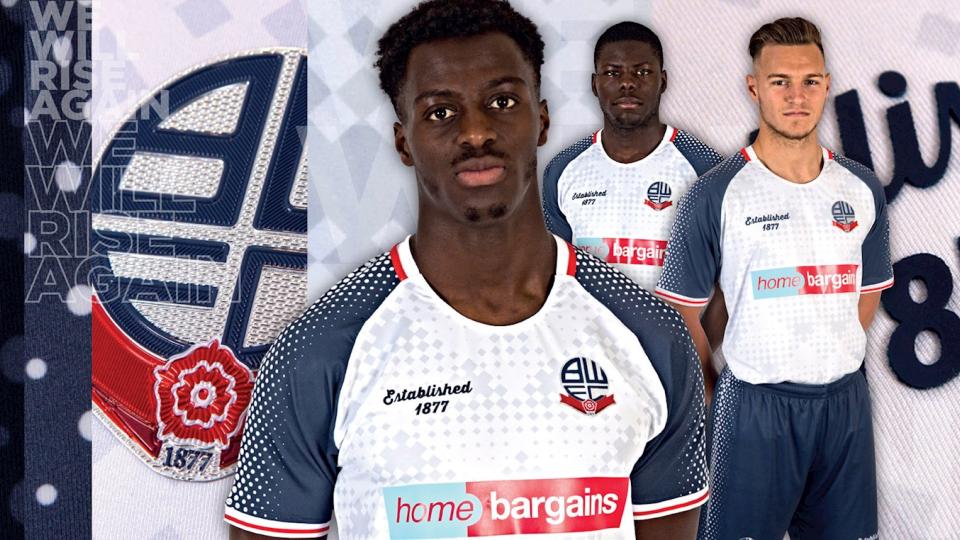 The home kit will feature the club’s traditional colours of white and navy blue with an initial limited amount of the shirts available in Bolton Central this afternoon.