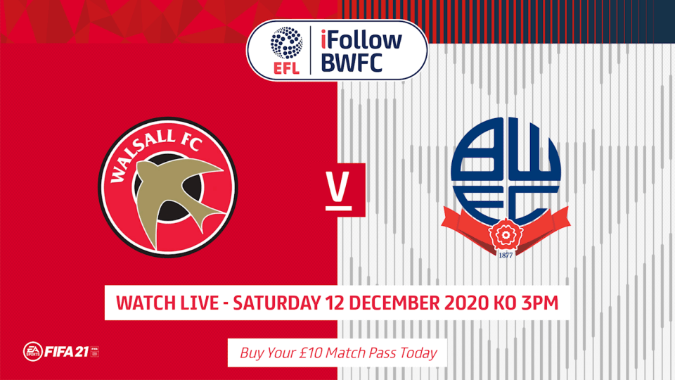 Bolton Wanderers fans will be able to watch Ian Evatt’s men when they travel to Walsall in Sky Bet League Two action on Saturday, kick off 3pm.