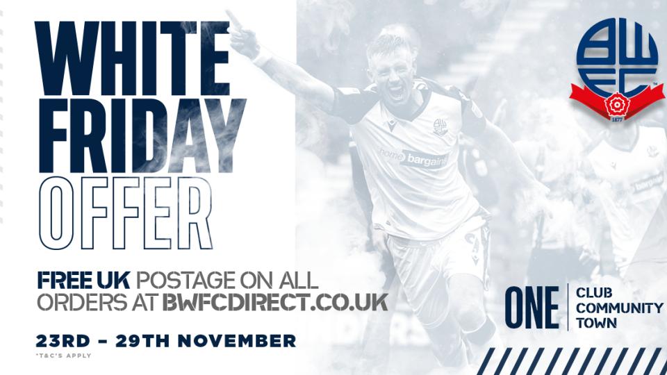 Celebrating ‘White Friday’, supporters purchasing Wanderers merchandise online at BWFC Direct can benefit from this great offer. Terms and Conditions apply.
