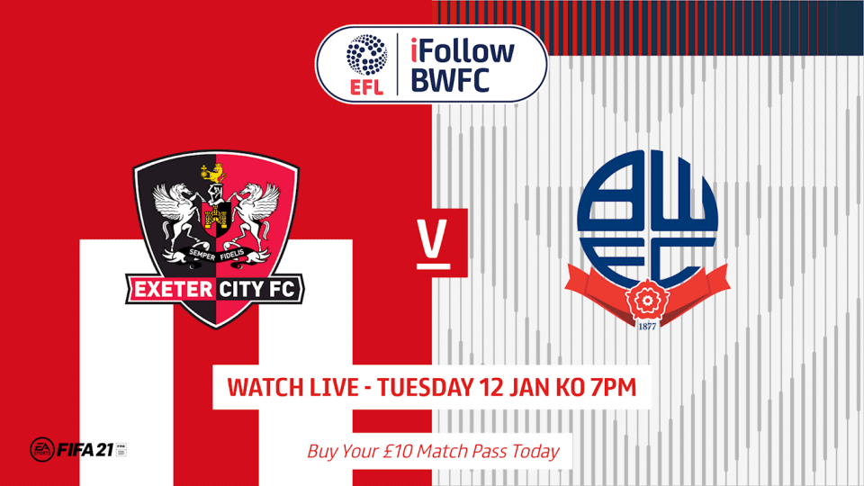 Bolton Wanderers supporters will be able to watch Ian Evatt’s Super Whites when they travel to Exeter City in Sky Bet League Two action on Tuesday 12 January, kick off 7pm.