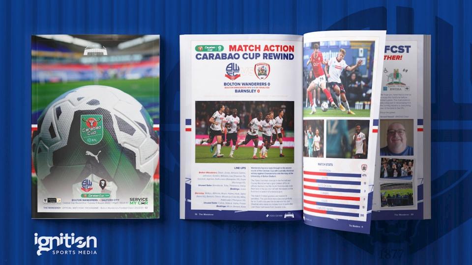 Wanderers take on Salford City in the Carabao Cup tonight and supporters will have the chance to buy a match-day programme.