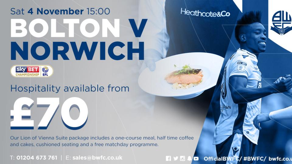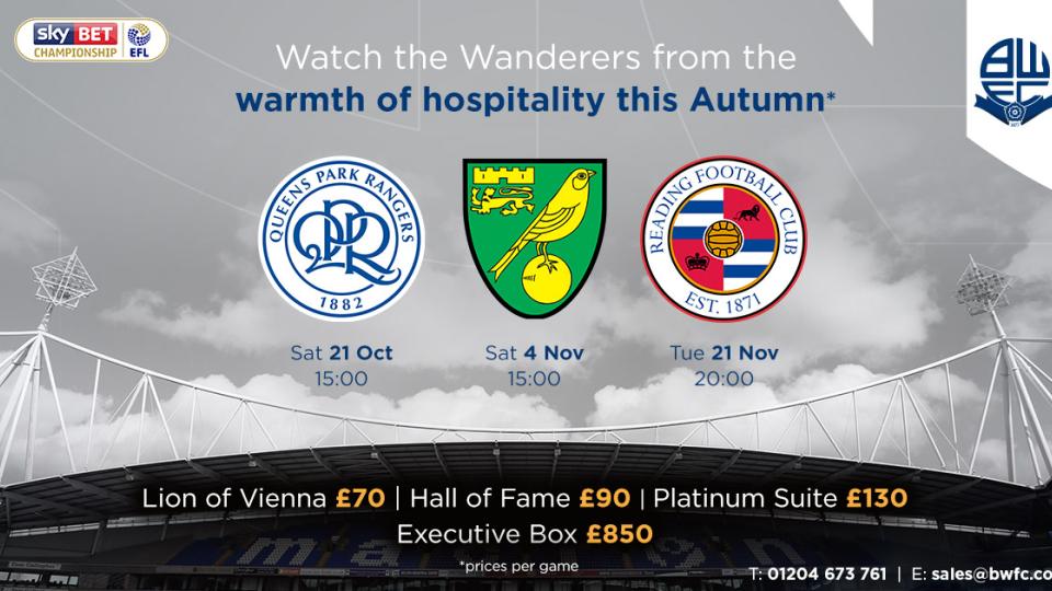 Commercial Watch Wanderers host Norwich City from the comfort of corporate hospitality! 1st November 2017
